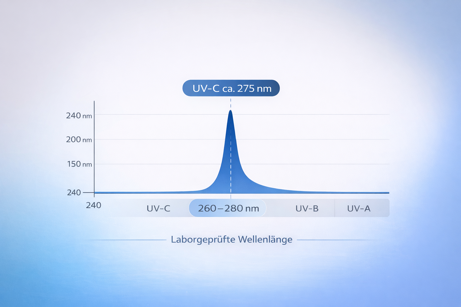 Dieser Bereich liegt im optimalen keimreduzierenden Spektrum zwischen 260–280 nm.
