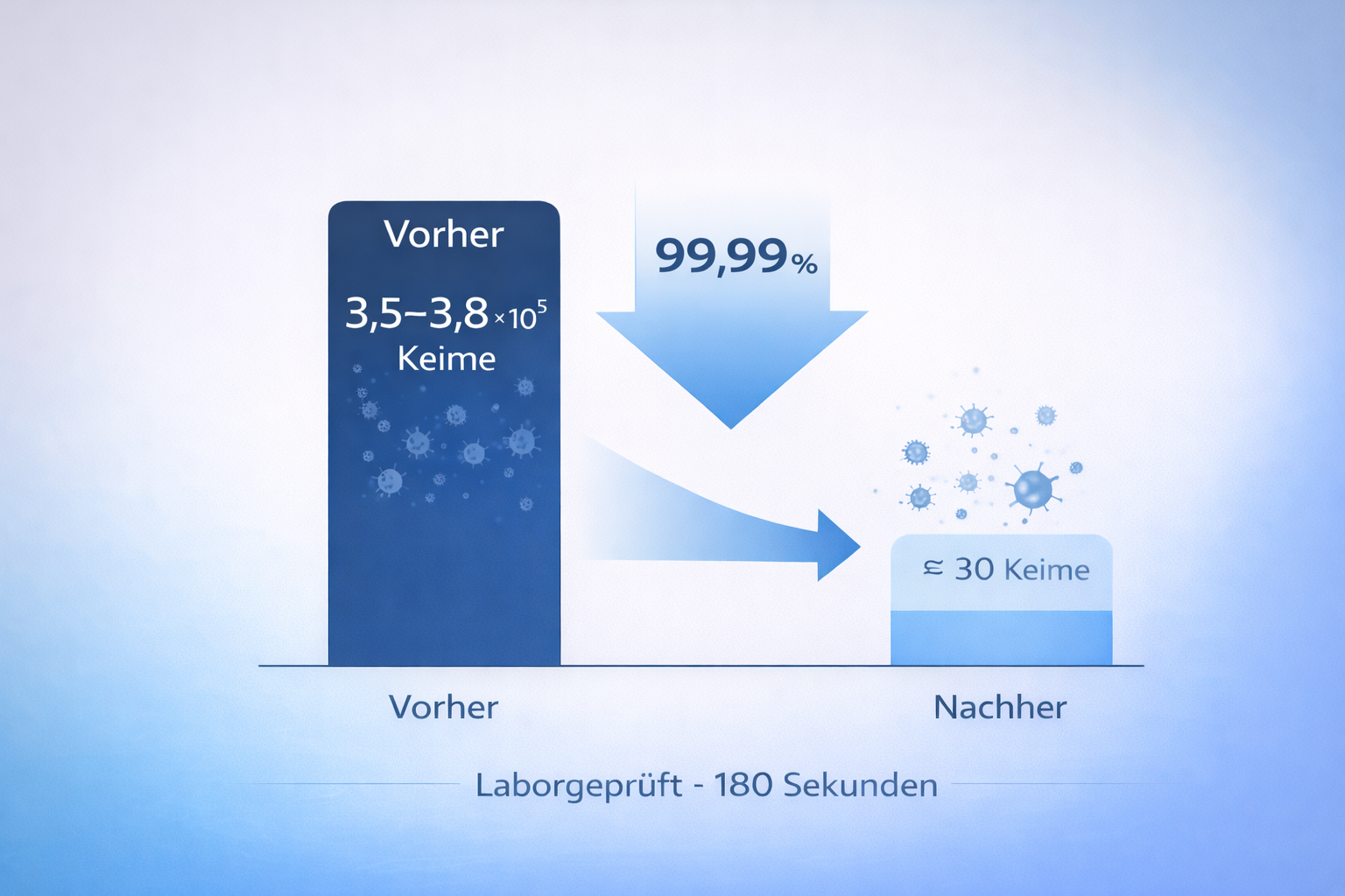 und deaktiviert bis zu 99,99 % der gängigen wasserbasierten Bakterien und Mikroorganismen.